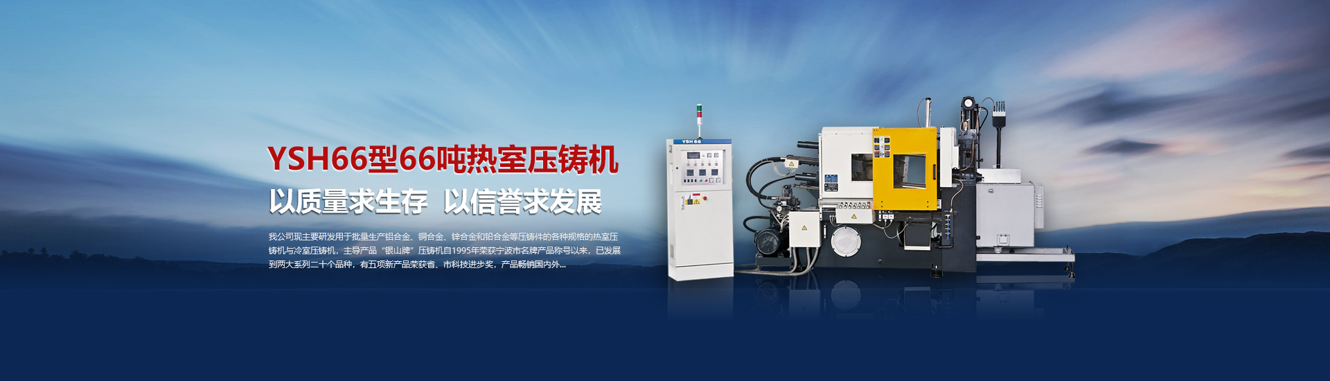 我司現(xiàn)主要研發(fā)用于批量加工生產(chǎn)鋁合金、銅合金、鋅合金和鉛合金等壓鑄件的各種型號規(guī)格的熱室/冷室壓鑄機,主導產(chǎn)品“銀山牌”壓鑄機自1995年榮獲寧波市名牌產(chǎn)品稱號以來,已發(fā)展到兩大系列二十個品種,有五項產(chǎn)品曾榮獲省、市科技進步獎,產(chǎn)品暢銷國內(nèi)外。歷年來向用戶提供了8000余臺設備,為中國的壓鑄工業(yè)發(fā)展作出了重要的貢獻,企業(yè)獲得了很高的信譽度。
